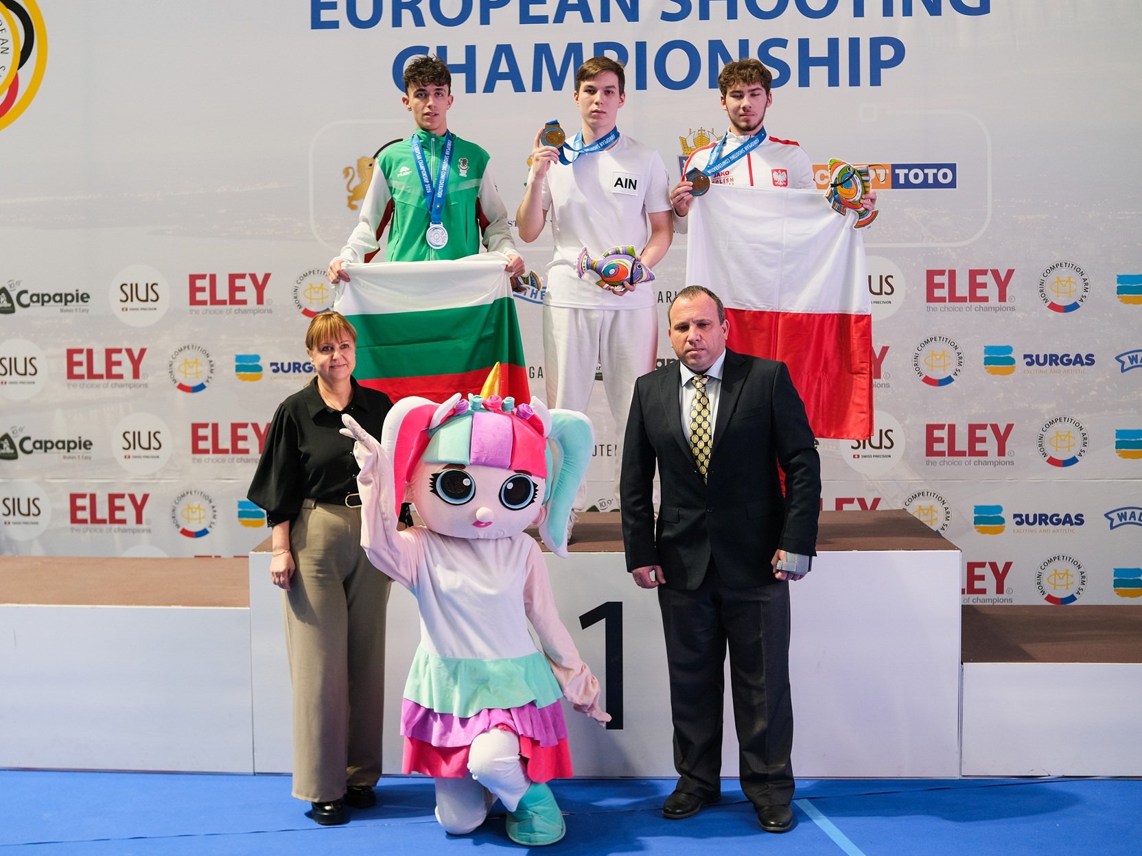 Финала изгледаха председателят на Българския стрелкови съюзи и вицепрезидент на Европейската конфедерация Весела Лечева, президентът на Европейската конфедерация Александър Ратнер и генералният й секретар Яхор Алейник.