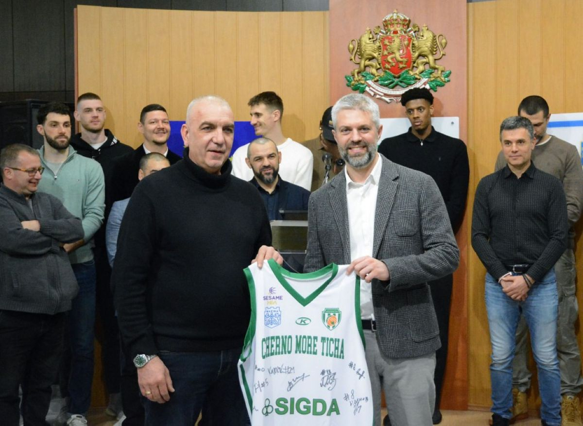 Кметът на Варна Благомир Коцев връчи плакет на Общината на състезателите, треньорския щаб и президента на баскетболен клуб Черно море Тича, който за втора поредна година спечели Купата на България.